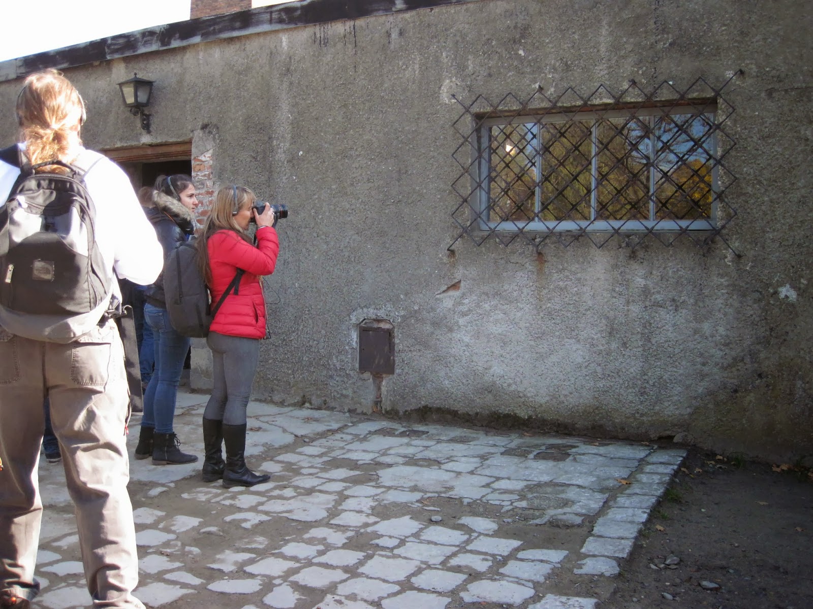 On October 19th I went on a half-day tour to Auschwitz. I can't say I was excited to go to a place where millions of innocent people lost their lives, but my grandfather had fought in World War II and I knew I had to see this place with my own eyes. I was with 5 others from my group, and we all traveled together on the same tour group and bus. On the bus ride to the concentration camp, we watched a video that was filmed by a Soviet army cameraman during and after the war. Once we arrived, we toured Auschwitz I, the first of the three camps located in the area. We entered through a gate that said "Arbeit Macht Frei," which is meant to convince the prisoners that this was in fact a work camp and if they worked hard they might some day be free. The day was cool and foggy, making the tour of this place even more chilling. This first camp was smaller and was more for political prisoners than for exterminating races of people, but the buildings have been partially turned into museum exhibits displaying the items that were found after the camps were liberated. Most of the items were taken from warehouses that the prisoners called "Canada" because this is where all their stolen items were stored, and these were places of wealth. The various rooms showed the thousands of eye glasses, clothes, shoes, and kitchen items that were confiscated once the prisoners arrived at the camp.